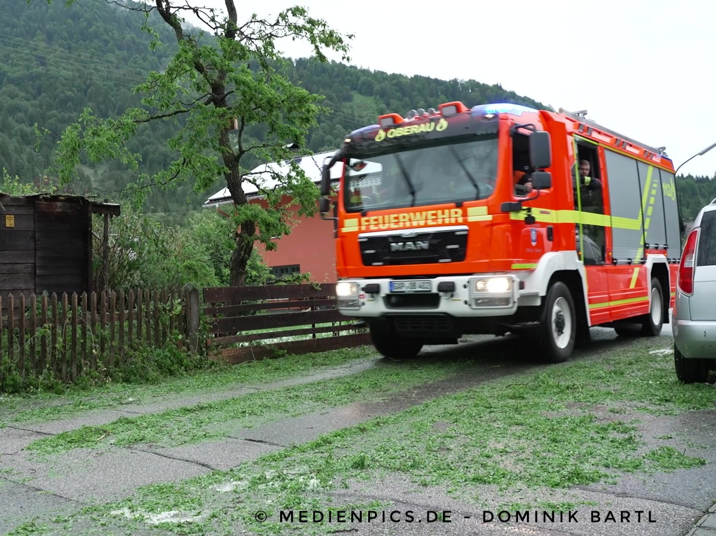 Oberau, schweres Hagelunwetter in Oberau, schwere Schäden an Haus und Autos, Feuerwehr rückte aus, 30.06.2022 Foto: Dominik Bartl